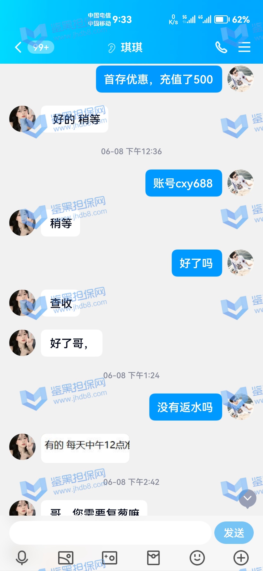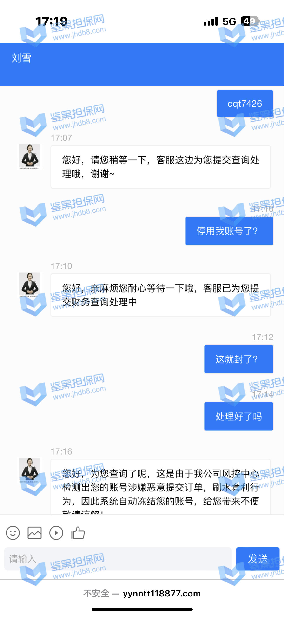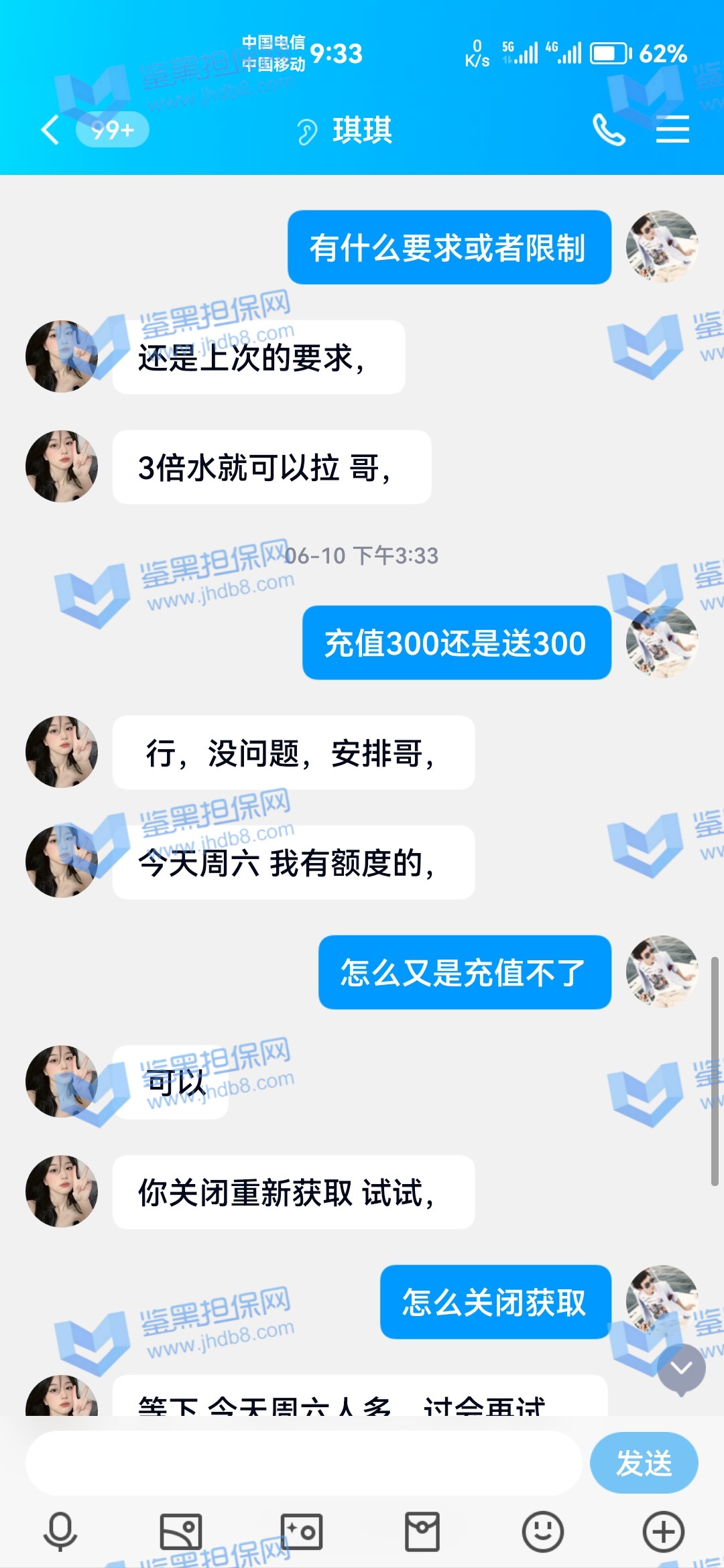 4.用户提交维权需为本人提交,若代替让人发布维权鉴黑担保网将拒绝受理;