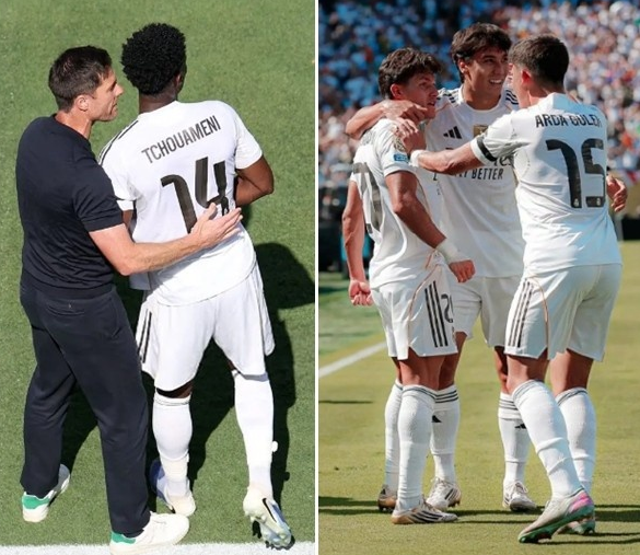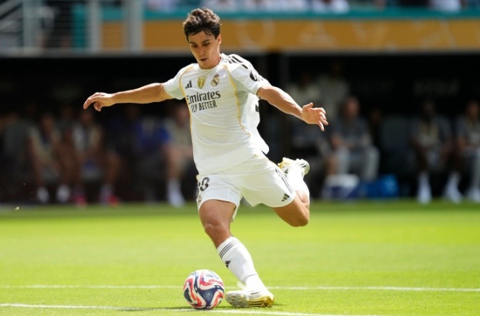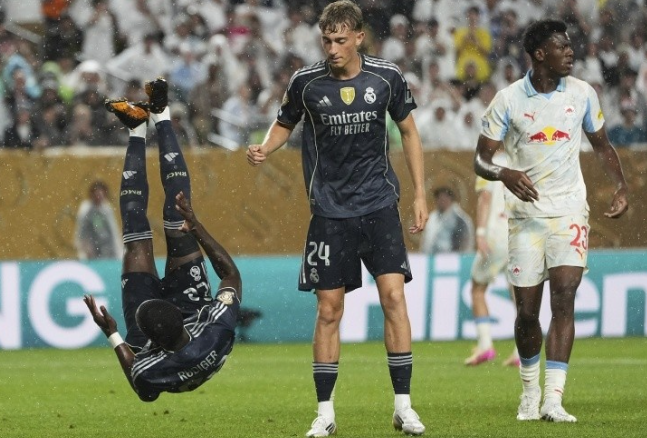 皇马进攻凶猛,居勒尔、马斯坦托诺、姆巴佩、罗德里戈执行高强度前场压迫。前20分钟,皇马就有8次射门2次射正,姆巴佩的倒勾、抢射,距离进球差之毫厘。
